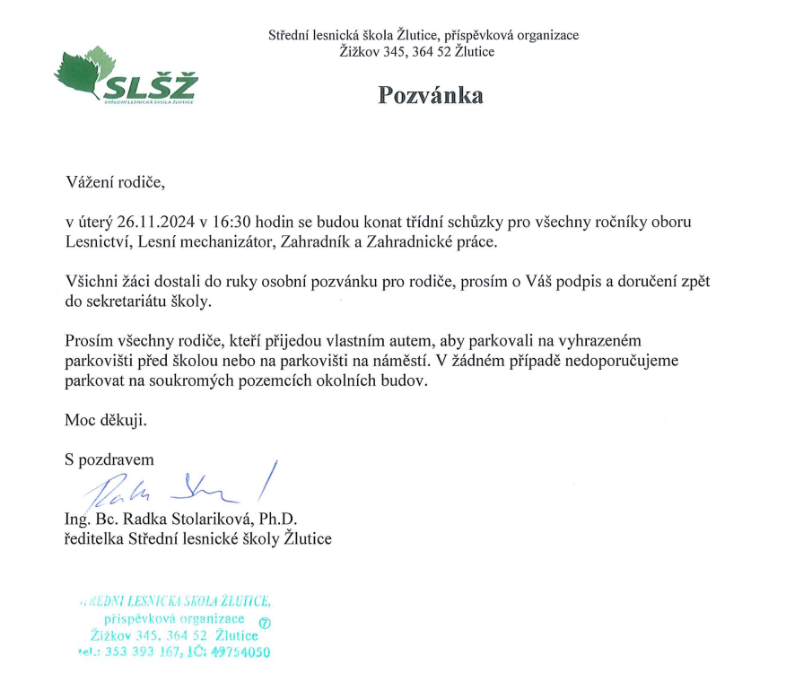 Úvod . Aktuality . Pozvánka na třídní schůzky
